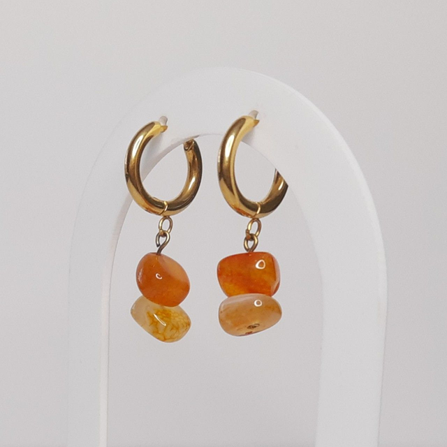 RVS ringetjes met oranje natuurstenen hanger. Door het natuursteen kan de kleur en de vorm van de steen afwijken van de foto.