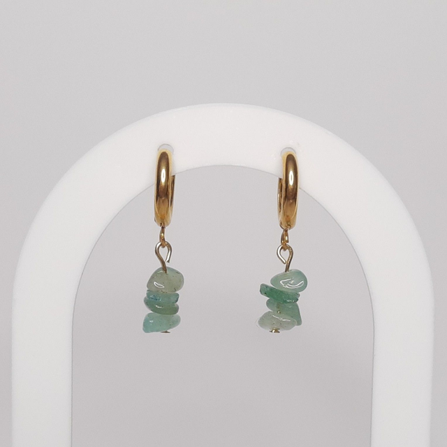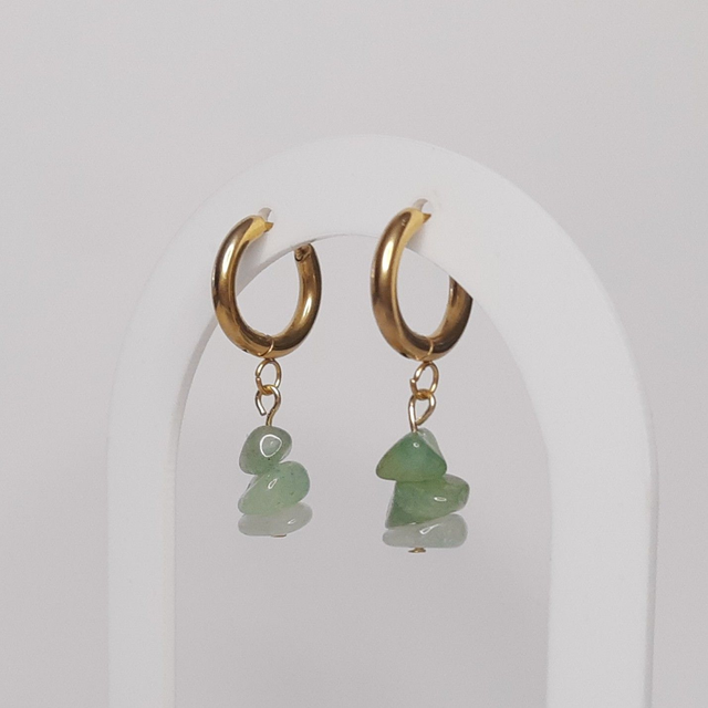RVS ringetjes met groene natuurstenen. Door het natuursteen kan de kleur en de vorm van de steen afwijken van de foto.
