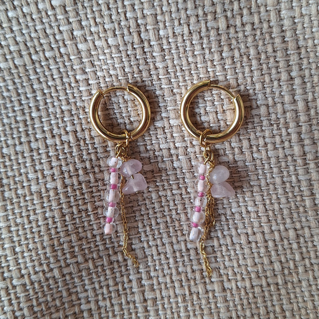 Verschillende roze hangers aan een ringetje.